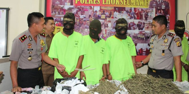 Wakapolres Lhokseumawe Kompol Imam Asfali, S.Ik kepada awak media mengatakan, bahwa selama kurun waktu 1 Minggu kita ada 4 perkara yang ditangani, dua kasus ganja dan 2 sabu, kasus ganja merupakan pengungkapan kasus Narkoba yang terakhir dengan barang bukti ganja sebanyak 3 Kg yang merupakan hasil pengembangan penangkapan ganja yang dilakukan oleh Polsek Blang mangat.