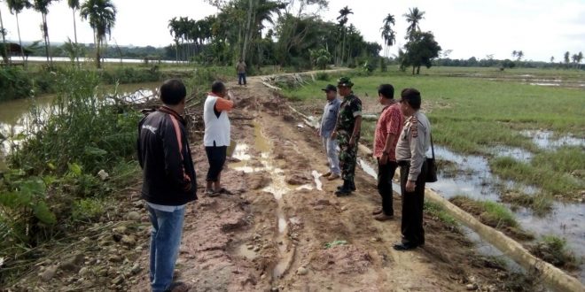 Lhokseumawe- Kapolsek Simpang Kramat bersama muspika Simpang Kramat Tinjau Tanggul Kerung Paya yang mengalami abrasi pasca banjir di Desa Paya Leupah Kecamatan Simpang kramat Aceh Utara.” Sabtu siang (09/12/2017) pukul 15.30 Wib ,