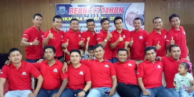 “sebagai bentuk rasa syukur kepada allah, reuni dilakukan di aula ayam penyet pak ulis didampingi istri masing-masing dengan memberikan santunan kepada sejumlah anak yatim serta megunjungi dan memberikan bantuan kepada personil polri Bripka Nuril Hadi yang mengalami lumpuh selama 3 tahun.”imbuhnya, rabu pagi (27/12)