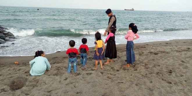 Lhokseumawe- Patroli di Lokasi Wisata pantai, selasa siang (26/12) Polisi Ingatkan Orang Tua Awasi Anak Bermain Di Tepi Pantai untuk mengantisipasi hal-hal yang tidak diinginkan.