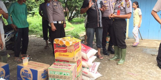 Lhokseumawe- Polres Lhokseumawe serahkan bantuan sembako kepada sejumlah korban terdampak bancana banjir di kecamatan Samudera serta korban gelombang pasang air laut di kawasan Hagu Selatan Kecamatan Banda Sakti Kota Lhokseumawe.” Sabtu siang (02/12/2017)