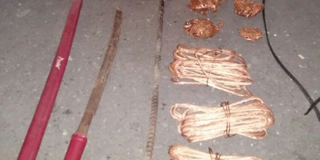 “Dari tersangka berhasil disita 3 buah gulungan kabel PLN berbahan kuningan, 4 buah gulungan lempeng pelindung kabel berbahan kuningan, 1 buah linggis dan 1 buah pedang samurai.”jelasnya