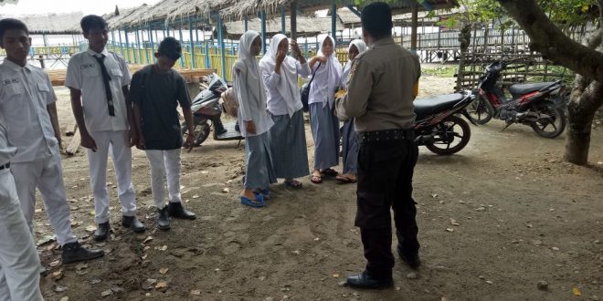 Lhokseumawe- Bhabinkamtibmas Polsek Syamtalira Bayu Brigadir Herriady temukan siswa-siswi yang bolos saat jam belajar di tempat wisata pantai lancuk Desa Lancuk, Kecamatan Syamyalira Bayu, Kabupaten Aceh Utata.” Selasa (05/12/2017) sekira pukul 11.00 Wib.