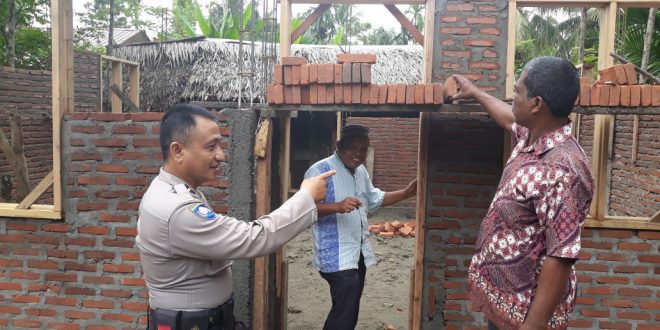 LHOKSEUMAWE- Bhabinkamtibmas Polsek Syamtalira Bayu Aiptu T. Saipul Bahri turun ke Desa pantau pembangunan rumah duafa alokasi dana Desa di Desa Blang Rimueng Kecamatan Syamtalira Bayu Kabupaten Aceh Utara.”Kamis (04/01/2018)