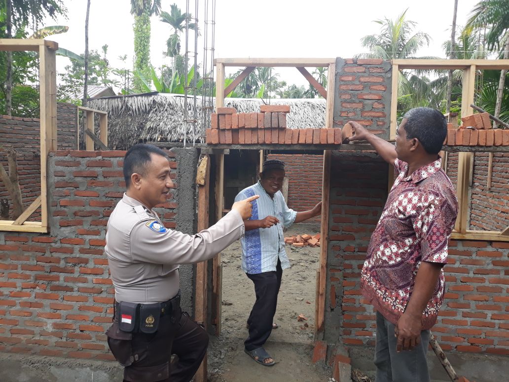 LHOKSEUMAWE- Bhabinkamtibmas Polsek Syamtalira Bayu Aiptu T. Saipul Bahri turun ke Desa pantau pembangunan rumah duafa alokasi dana Desa di Desa Blang Rimueng Kecamatan Syamtalira Bayu Kabupaten Aceh Utara.”Kamis (04/01/2018)