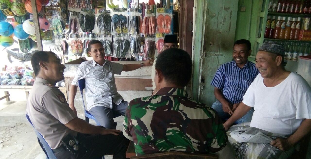 LHOKSEUMAWE- Kapolsek Nisam, Ipda Amir Husin bersama Danramil Nisam serta Camat Nisam saweu keude kopi bersama. Jum’at (19/01/2018) Sambil ngopi bareng para muspika tersebut berdiskusi dengan tokoh agama dan tokoh masyarakat di Desa Meunasah Meucat terkait situasi kamtibmas di kawasan Nisam Kabupaten Aceh utara.