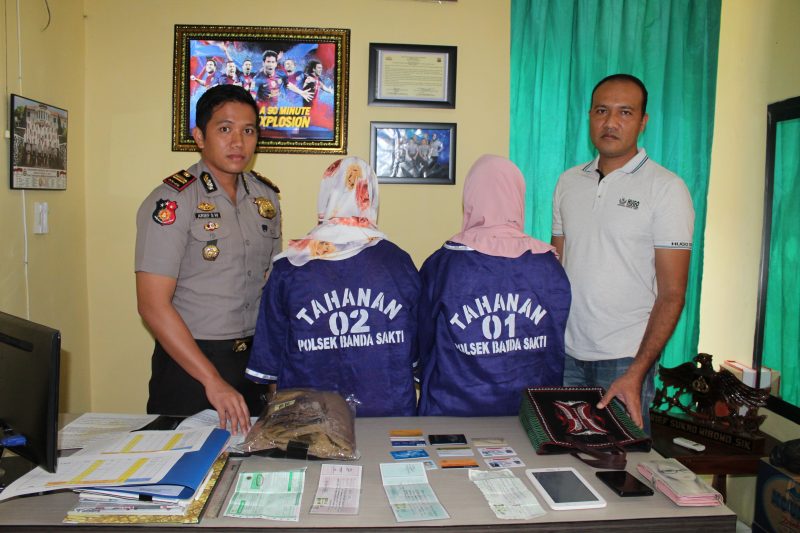 LHOKSEUMAWE- Kepolisian Resor Lhokseumawe Sektor Banda Sakti berhasil meringkus dua wanita terkait penipuan penempatan PNS dan Modal Usaha di Kota Lhokseumawe. Hal tersebut diungkap oleh Kapolsek Banda Sakti, minggu sore (31/12/2017) saat gelar press release di Mapolsek Banda Sakti Kota Lhokseumawe.