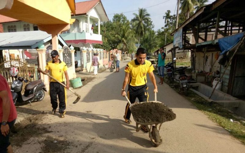 LHOKSEUMAWE – Bhabinkamtibmas polsek meurah mulia Brigadir ismayanda ikut gotong royong keliling bersama TNI dan masyarakat Desa Menasah Keeh Kecamatan Meurah Mulia Kabupaten Aceh Utara.” Senin pagi (26/01/2018)’