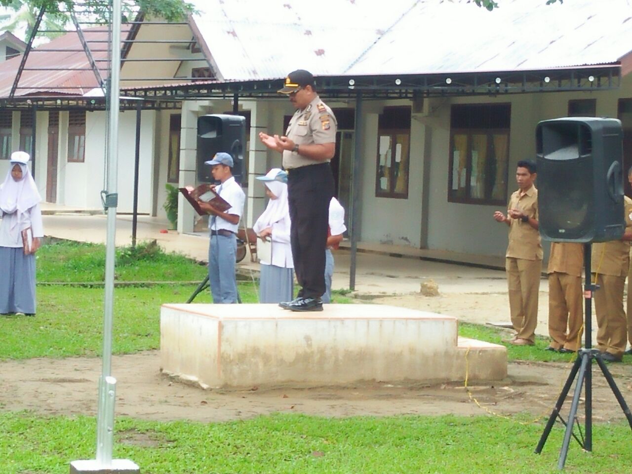 LHOKSEUMAWE- Kapolsek Kuta Makmur AKP Fitriadi pimpin upacara bendera di SMU Negeri 1 Kecamatan Kuta makmur Kabupaten Aceh Utara.”Senin (22/01/2018) pukul 07.30 WIB