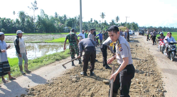 “Rusaknya jalan tersebut sudah parah dan rawan akan laka lantas terhadap pengguna jalan. Jalan yang diperbaiki diantaranya jalan Desa Karing, Desa Rayek paya itek, Desa Tanjung dan Desa Rangkileh Kecamatan Meurah.” ungkap Kapolsek, Sabtu siang (06/01/2018)
