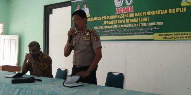 Kapolres Lhokseumawe AKBP Hendri Budiman, SH, S.Ik, MH melalui Kapolsek Muara Batu Iptu Bukhori Gam Cut mengatakan, maksud dan tertujuan pertemuan tersebut dalam rangka membahas tentang issu pelayanan kesehatan dan kedisiplinan aparatur sipil negara dalam kawasan puskemas muara batu.