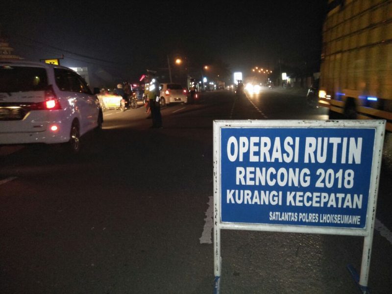 LHOKSEUMAWE– Personil Satuan Lantas Polres Lhokseumawe gelar razia rutin didepan Mapolres Lhokseumawe, sabtu malam (20/01) sekitar pukul 21.00 WIB. razia tersebut untuk menekan angka kriminalitas dan pelanggaran lalu lintas di Kota Lhokseumawe.