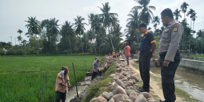 LHOKSEUMAWE- Personil Polsek Syamtalira Bayu Resor Lhokseumawe pantau dan memberikan pelayana pengamanan pembangunan jalan di tanah tanggul irigasi Desa Baro Kulam Gajah Kecamatan Syamtalira Bayu Kabupaten Aceh Utara wilayah hukum Polres Lhokseumawe.” Minggu (21/01/2018)