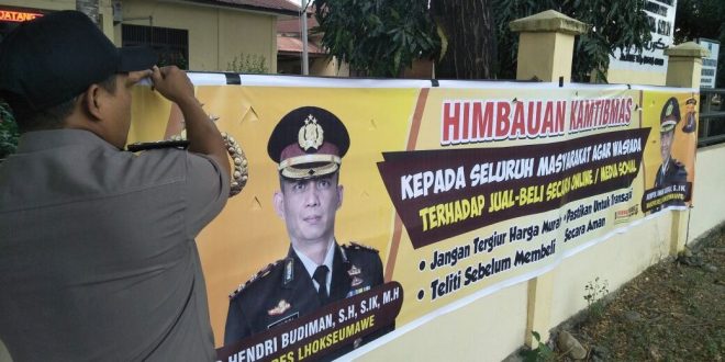 LHOKSEUMAWE- Kepolisian Resor Lhokseumawe mengimbau masyarakat agar waspada terhadap aksi penipuan melalui media online baik sosial (Medsos) maupun media elektronik yang mulai marak dan meresahkan, dengan dalih penjualan berbagai produk dan merugikan pihak korbannya.