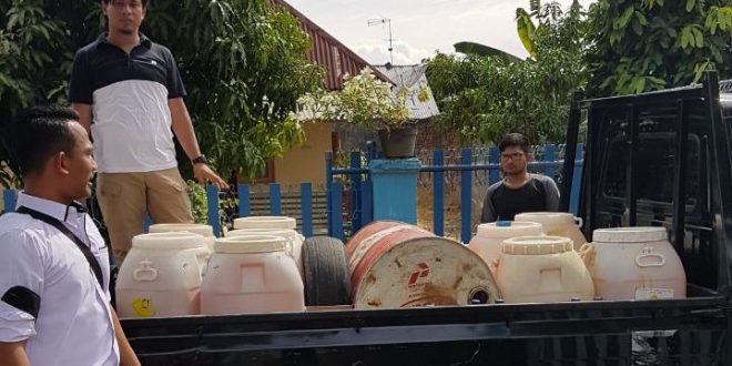 LHOKSEUMAWE- Satuan Reserse Kriminal Polres Lhokseumawe dipimpin langsung AKP Budi Nasuha. SH, Senin (22/01/2018) berhasil mengungkap kasus bahan bakar minyak oplosan dengan membekuk 3 tersangka serta menyita 6 drum diduga bahan bakar minyak oplosan di Kota Lhokseumawe.