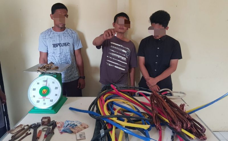 “MA dan ZE adalah otak pelaku pencurian kabel optik PLN tersebut, sedangkan JU sebagai penadah.”ungkap Kapolsek