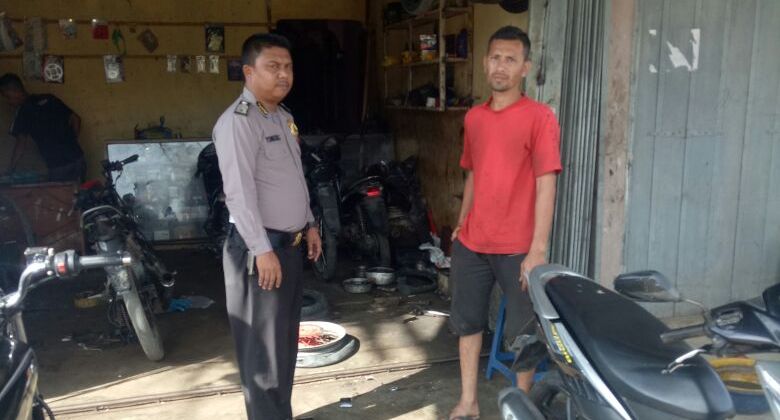 LHOKSEUMAWE- Kanit Binmas Polsek Samudera Bripka Yunizar Tambunan sambangi bengkel sepeda motor Desa Kuta Glumpang Kecamtan Samudera Kabupaten Aceh utara.”kamis pagi (25/01/2018)