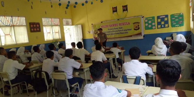LHOKSEUMAWE- Sawue Sikula, polisi mengajak siswa agar rajin beribadah dan belajar, serta menjauhi narkoba. Rabu (17/01/2018). Hal tersebut di sampaikan Bhabinkamtibmas Aiptu Husni kepada pelajar Smp N 6 Muara Satu Kota Lhokseumawe.
