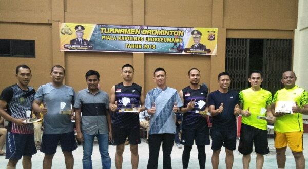 LHOKSEUMAWE- Turnamen Badminton Piala Kapolres Lhokseumawe berakhir dengan memunculkan sang juara yang berhasil berjuang dari laga awal hingga berakhir di grand Final yang berlangsung digedung serba guna Polres Lhokseumawe. “Jum’at malam (19/01/2018)