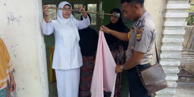 LHOKSEUMAWE- Bhabinkamtibmas Polsek Meurah Mulia pantau kegiatan posyandu di Desa Binaan yang berlangsung di Desa Nga dan Manyang Kecamatan Meurah Mulia Kabupaten Aceh Utara.” Senin (12/02/2018)