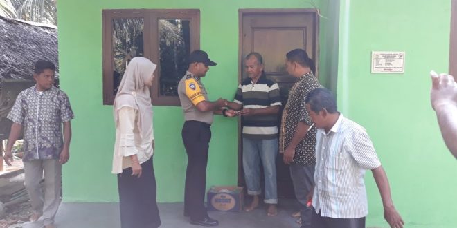 “Bantuan satu unit rumah kaum duafa telah di serahkan kepada saudara Ismail, dengan didampingi pihak aparatur gampong setempat, ” kata Ipda Zahabi”