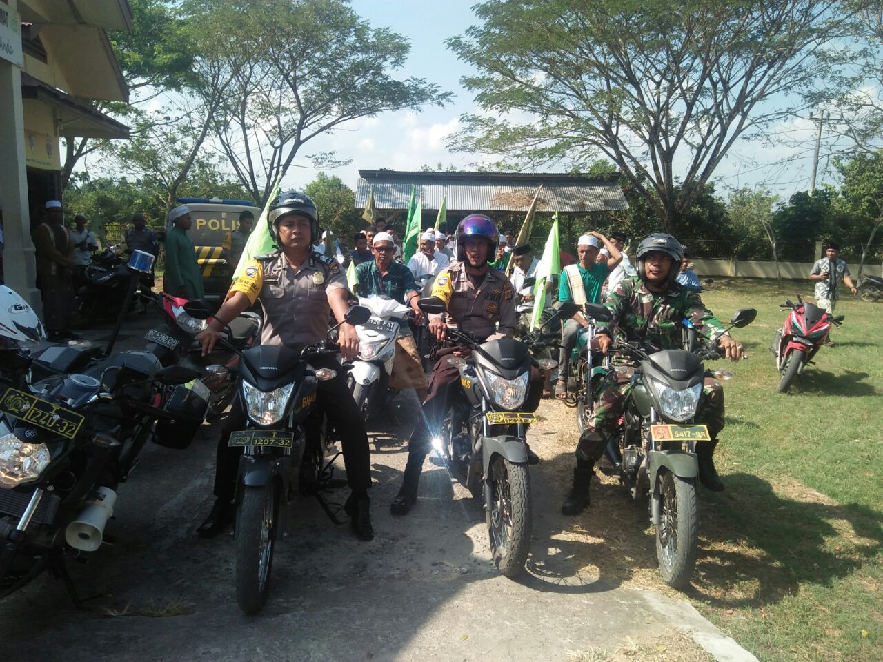 LHOKSEUMAWE- Polisi bersama TNI kawal pawai pengajian tarbiyah Mazhab Syafie di Kecamatan Simpang Kramat Kabupaten Aceh Utara. ” Jum’at (16/02/2018) pukul 10.30 WIB