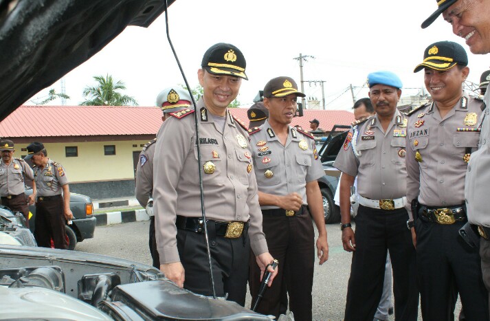 LHOKSEUMAWE- Dalam upaya meningkatkan pelayanan bagi masyarakat dan personil polisi dalam ruang lingkup Polres Lhokseumawe, Selasa (24/3/2018), pagi. Kapolres Lhokseumawe AKBP Ari Lasta Irawan, S.Ik, usai melaksanakan apel langsung melakukan pengecekan sejumlah kesiapan ranmor dinas yang digunakan oleh personil di jajaran Mapolres Lhokseumawe.