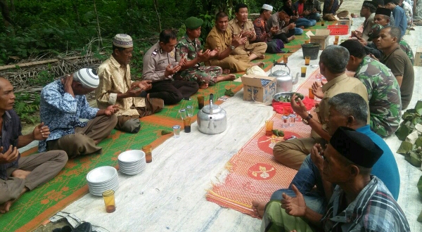 TribrataNews, Lhokseumawe- Kepolisian Sektor (Polsek) Simpang Kramat, bersama masyarakat Desa Kilometer VI, Kecamatan Simpang Kramat, Aceh Utara, secara bersama-sama ikut menghadiri acara kenduri Uteun (Hutan) yang di adakan di desa setempat, Senin 16 April 2018, sekira pukul 12.00 WIB.