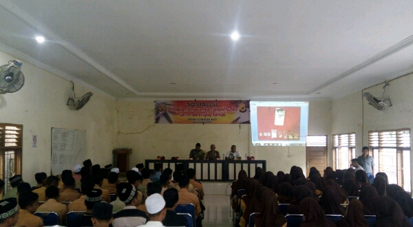 Tribrata News, Lhokseumawe- Polisi sosialisasikan bahaya penyalahgunaan dan peredaran gelap Natkotika kepada ratusan pelajar di Aula kantor camat Kecamatan Syamtalira Bayu Kabupaten Aceh Utara, Sabtu 21 April 2018 pukul 09.30 Wib.