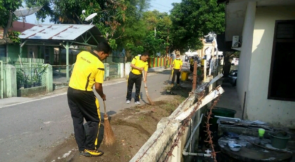 Tribrata News, Lhokseumawe-Sejumlah personil Polsek Dewantara kompak melakukan gotong royong bersama dalam program Jum’at bersih di Polsek Dewantara Kecamatan Dewanatara Kabupaten Aceh Utara Wilayah hukum Polres Lhokseumawe, Jum’at (06/05/ 2018) sekira pukul 08.00 WIB