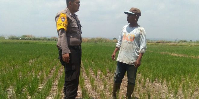 Tribrata News, Lhokseumawe- Polisi Bhabinkamtibmas Polsek Muara satu sambang petani padi yang terancam gagal panen akibat kekeringan di Desa Cot Trieng Kecamatan Muara Satu Kota lhokseumawe, Selasa 10 April 2018 pukul 11.00 WIB