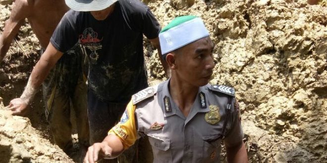 Usai sholat jenazah Bripka Hamzaya ikut langsung mengantar jenazah ke pemakaman dan masuk keliang lahat untuk menyambut Jenazah.