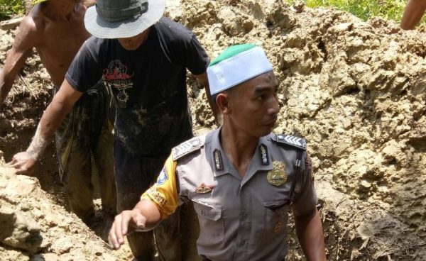 Usai sholat jenazah Bripka Hamzaya ikut langsung mengantar jenazah ke pemakaman dan masuk keliang lahat untuk menyambut Jenazah.