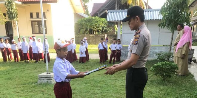 Tribrata News, Lhokseumawe- Saweu Sikula di SD Paya Bili Meurah Mulia, Kepala Kepolisian Resor Lhokseumawe Sektor Kuta Makmur Iptu Bustani bersama Bhabinkamtibmas Bripka Hamjaya Saweu menghimbau pelajar agar meningkatkan keberisihan di lingkungan sekolah serta menegakkan sholat lima waktu sejak dini. Hal tersebut disampaikan Kapolsek saat memimpin upacara bendera.” Senin pagi (14/05/2018)