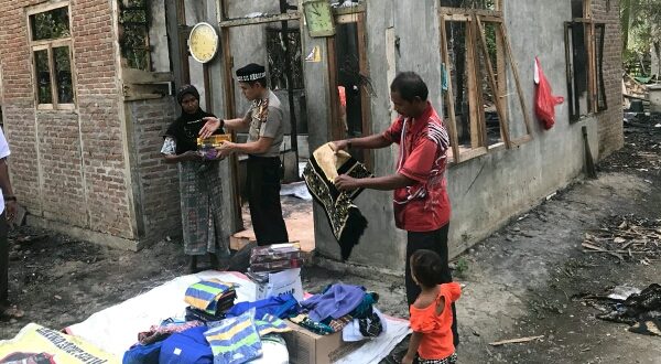 Tribrata News, Lhokseumawe- Kepala Kepolisian Resor Lhokseumawe Sektor Meurah mulia bersama Camat setempat menyerahkan bantuan masa panik kepada keluarga korban yang rumahnya terbakar Di Desa Geulumpang Kec. Meurah Mulia Kab. Aceh Utara, Rabu 23 Mei 2018 pukul 18.00 Wib