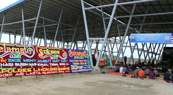 Tribrata News, Lhokseumawe- Polres Lhokseumawe dan pemko Lhokseumawe prakarsai Zikir dan Doa Bersama dalam rangka peringatan hari buruh sedunia atau may day di Terminal Bongkar Muat Desa Meunasah Mee Kandang Kecamatan Muara Dua Kota Lhokseumawe,”Selasa 01 Mei 2018 sekira pukul 10.00
