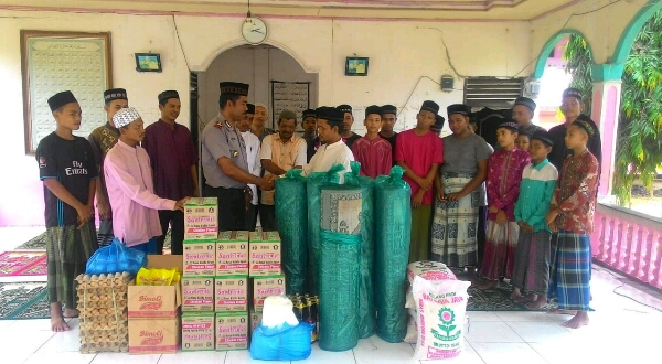 Dibulan pernah berkah ini, Kapolsek Samudera Iptu Bachtiar turun langsung ke dayah dengan didampingi Waka Polsek Ipda Yunus Damanik serta Babinkamtibmas Brigadir Arna Muharram untuk menyerahkan sejumlah bantuan sembako.