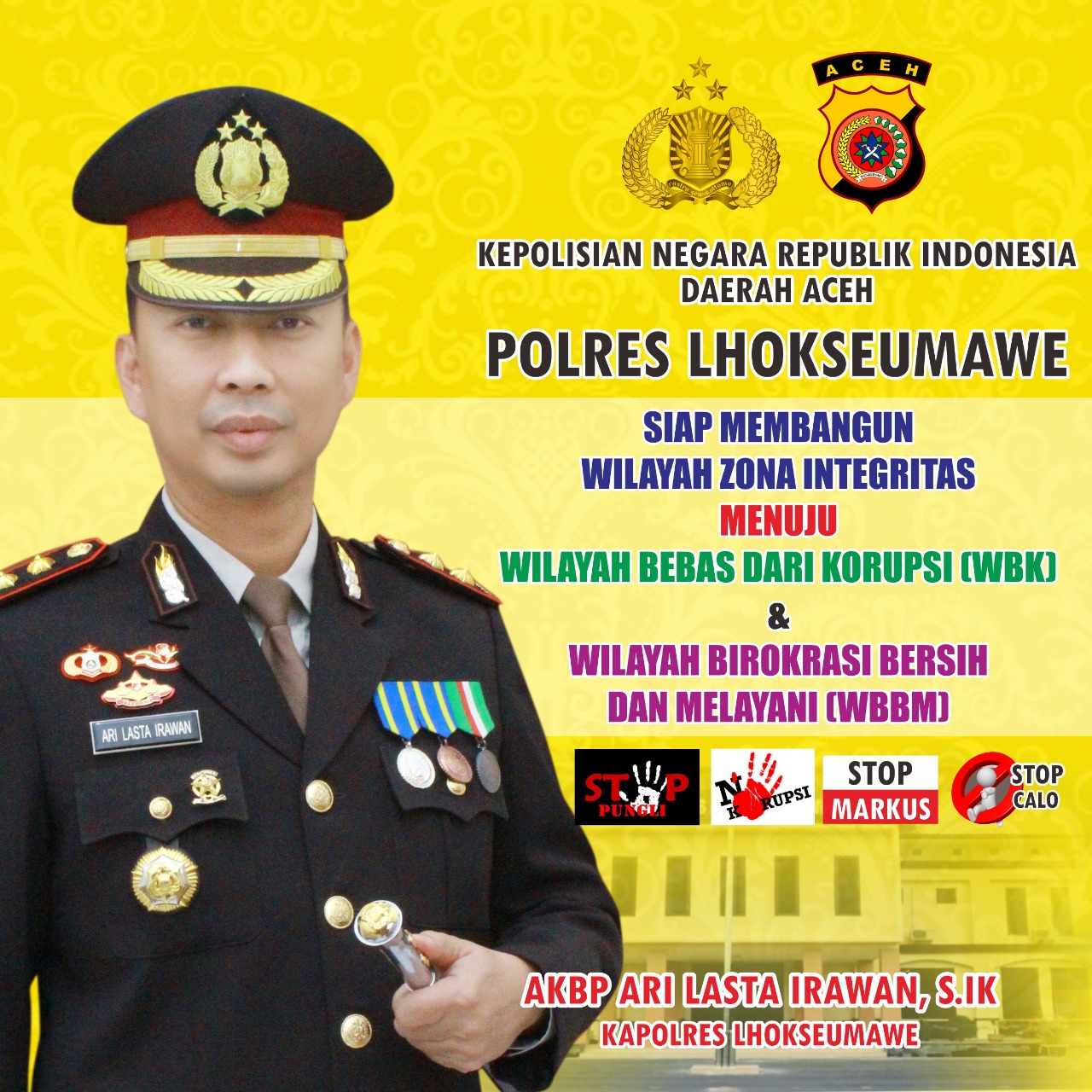 Tribrata News, Lhokseumawe-Jajaran Polres Polres Lhokseumawe dibawah komando AKBP Ari Lasta Irawan, S.Ik berkomitmen membangun Zona Integritas menuju Polres Lhokseumawe yang WBK (Wilayah Bebas Korupsi) dan WBBM (Wilayah Birokrasi Bersih dan Melayani).