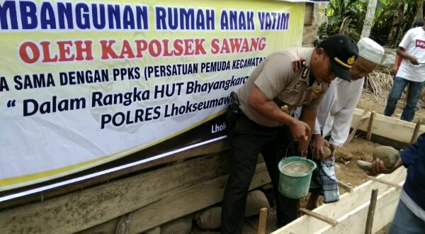 Kapolres Lhokseumawe melalui Kapolsek Sawang Ipda Zahabi menyebutkan, pihaknya sangat mengapresiasi sambutan dan semangat terhadap persatuan pemuda Kecamatan Sawang untuk membangun rumah anak yatim dan kurang mampu tersebut.