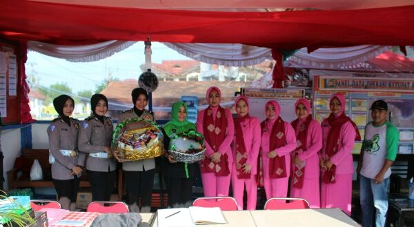 Tribrata News, Lhokseumawe- Ketua Cabang Bhayangkari Lhokseumawe Ny. Rini Ari Lasta Irawan mengunjungi Pos pengamanan lebaran di wilayah hukum Polres Lhokseumawe, Selasa (13/6/2018) siang