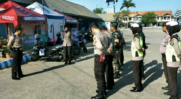 Tampak hadir dari unsur Polri TNI, Satpol PP dan Instansi terkait yang siap bertugas melayani masyarakat di Pos Pengamanan dan Pelayanan lebaran tahun 2018.