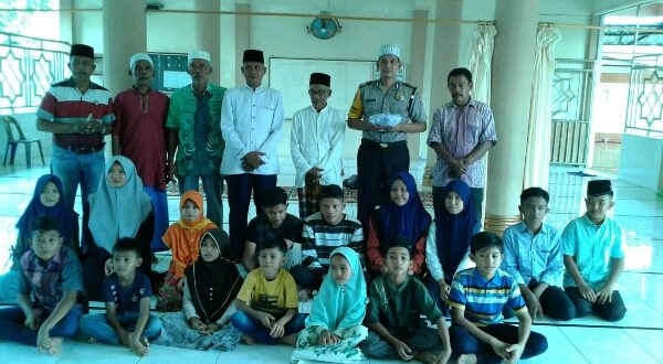 Tribrata News, Lhokseumawe- Polisi Bhabinkamtibas Muara Dua Bripka Noveri berikan santunan kepada anak yatim di Dusun Tumpok Dalam Desa Meunasah Alue Desa Mns.Alue Kec.Muara Dua, Selasa (12/06/2018) pukul 16.30 Wib