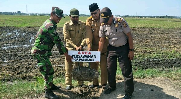Tribrata News, Lhokseumawe- Kepala Kepolisian Resor Lhokseumawe Sekto Muara Batu Iptu Bukhori Gam Cut bersama muspika setempat tinjau lokasi konflik tapar batas antara Desa Keude Bungkaih dengan Desa Paloh Awe Kecamatan Muara Batu Kabupaten Aceh Utara.” selasa (03/07/2018) siang