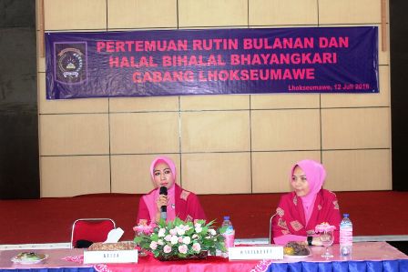 Tribrata News, Lhokseumawe- Ratusan Bhayangkari Cabang Lhokseumawe menghadiri pertemuan rutin bulan serta halal bin halanl yang berlansung di gedung serba guna Wira Satya Polres Lhokseumawe, Kamis (12/07/2018) pagi