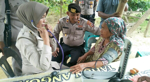 Tribrata News, Lhokseumawe-Sejumlah personil dari satuan sabhara dan petugas kesehatan Polres Lhokseumawe berikan bingkisan sembako serta melakukan pemeriksaan dan pengobatan kepada Warga Miskin.” Selasa (31/07/2018)