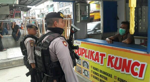 Tribrata News, Lhokseumawe- Tim URC Sabhara Polres Lhokseumawe sambangi tukang duplikat kunci saat melakukan patroli rutin di kawasan Kota Lhokseumawe, Sabtu (25/08/2018) Siang