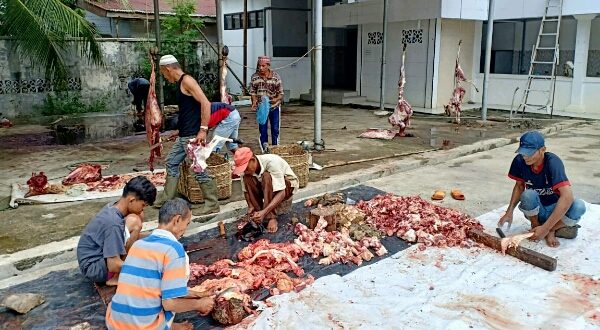 “Selesai zuhur daging kurban tersebut langsung diberikan kepada masyarakat sekitar yang berhak menerimanya,” terang Kompol H. Suharmadi