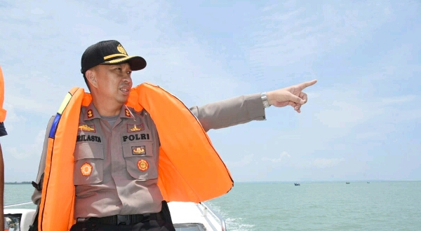 Kapolres yang didampingi oleh Kasat Polair Ipda Saiful Bahri dan Kasat Sabhara Ipda Sofyanto. SE berangkat dari PPI Pusong Lhokseumawe dengan mengunakan speedboat Satpol Air menyusuri sepanjang pantai diwilayah perairan Lhokseumawe.