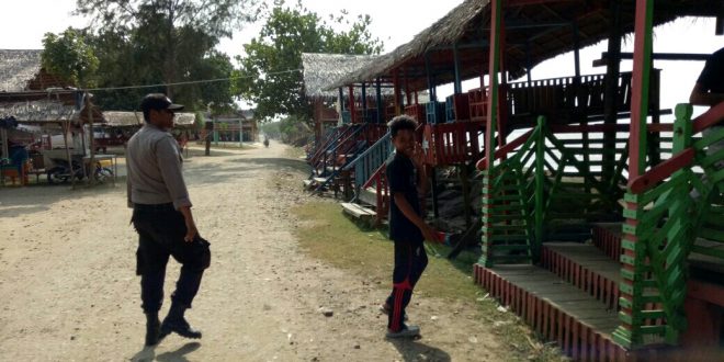 Tampak sejumlah personil melakukan patroli di wisata pantai Pulau Seumadu Lhokseumawe serta pantai Lancuk Syamtalira Bayu Kab. Aceh Utara.