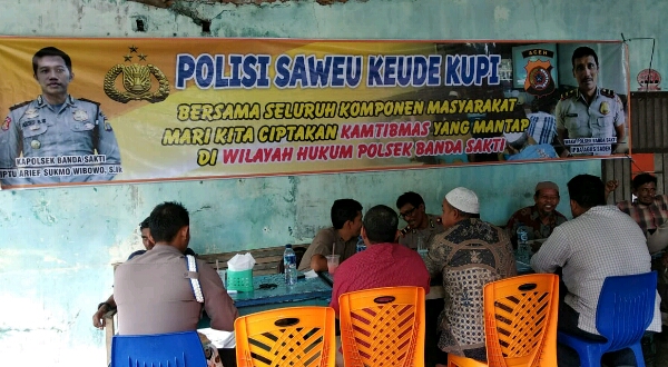 Kepolisian Resor Lhokseumawe Sektor Banda Sakti imbau warga menjauhi narkotika dan obat-obat terlarang (narkoba). Hal itu disampaikan kepada warga dalam acara Saweu keude kupi dalam rangka sosialisasi kamtibmas di desa Keude aceh Kecamatan Banda Sakti kota Lhokseumawe.”kamis ( 09/08/2018) pukul 10.00 Wib